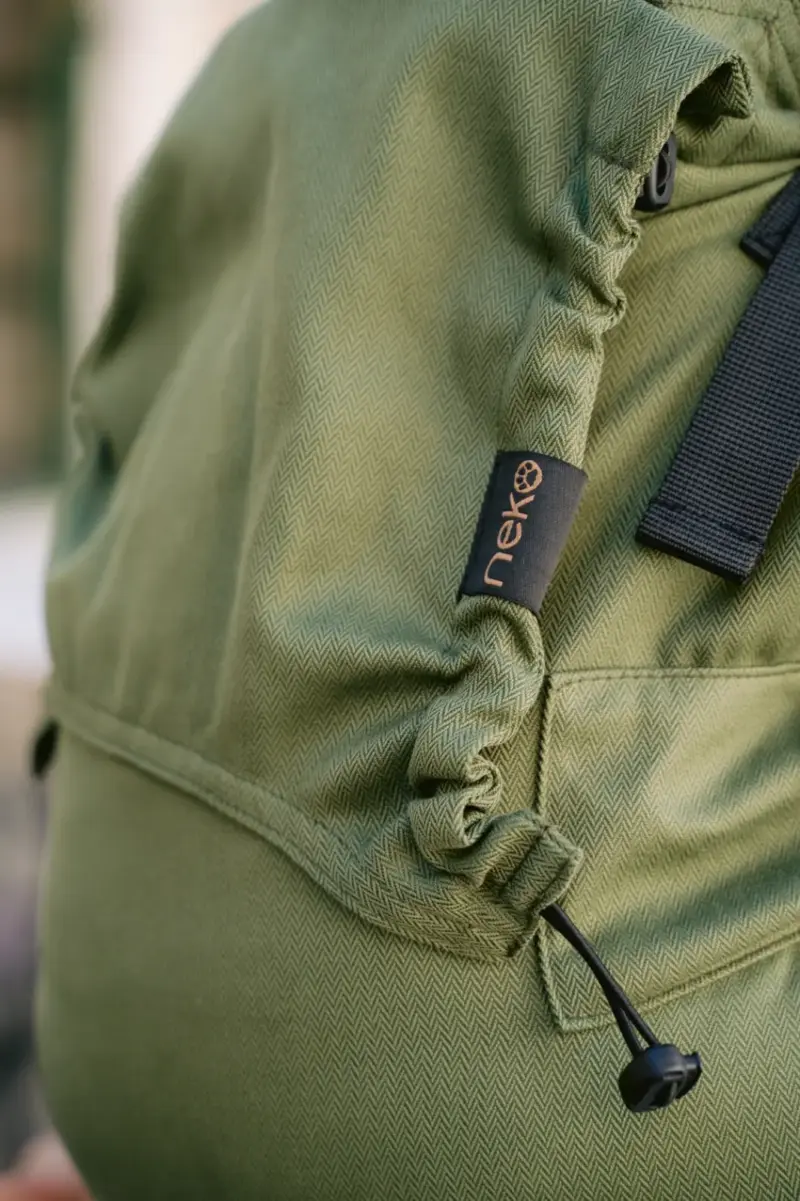 Acolchados de alta densidad en zona de cinturón y tirantas que ofrecen un gran soporte y comodidad para quien portea. Además de disponer de acolchados en la zona de las piernas del/a bebé.
