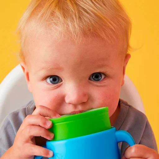 Vaso para niños con un toque especial. Con este vaso los peques tienen el control con el borde de silicona de 360° que se activa con los labios: sin derrames. Cuanto más firme presionen, más rápido fluirá. Las exclusivas asas con cierre giratorio garantizan que no haya fugas.